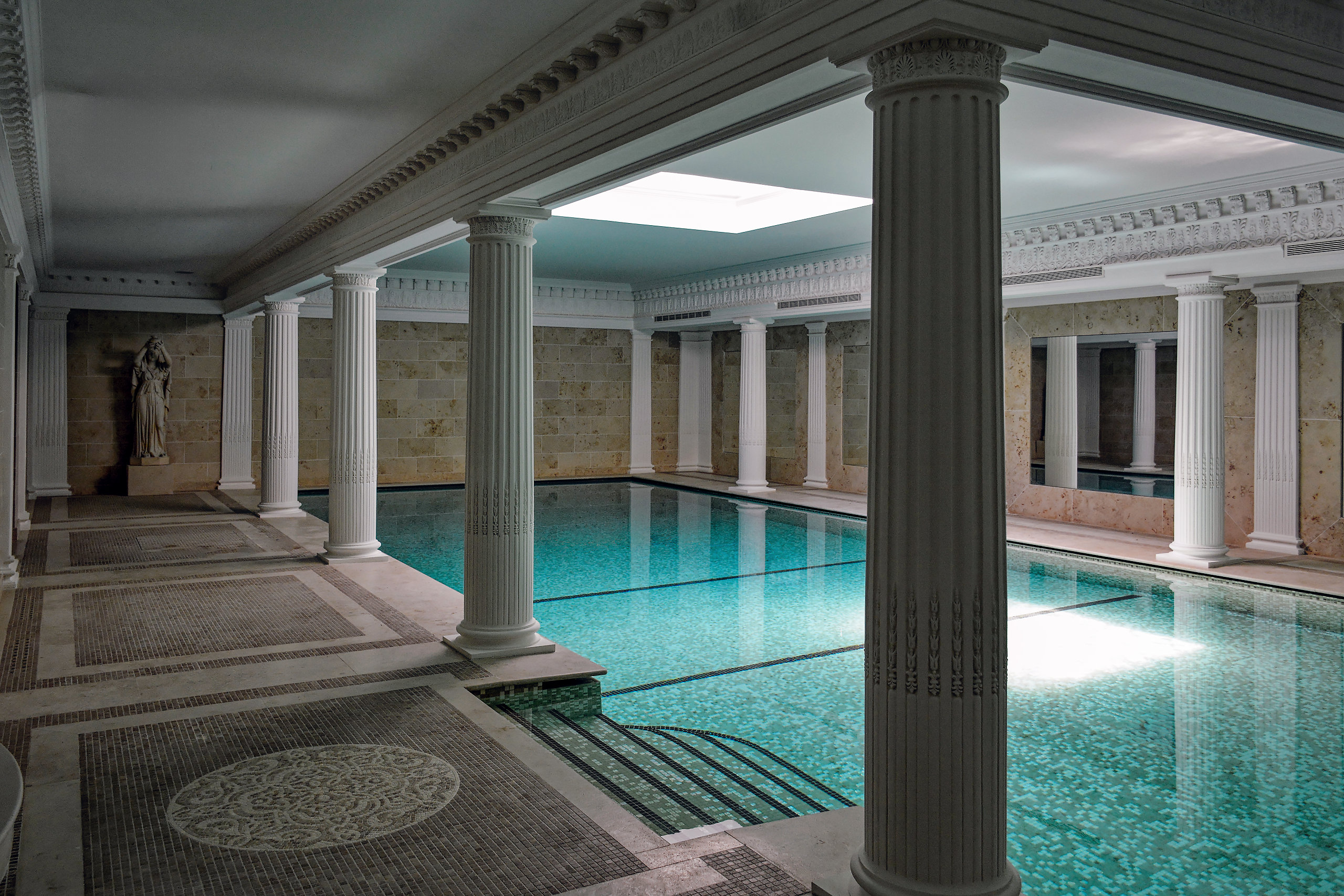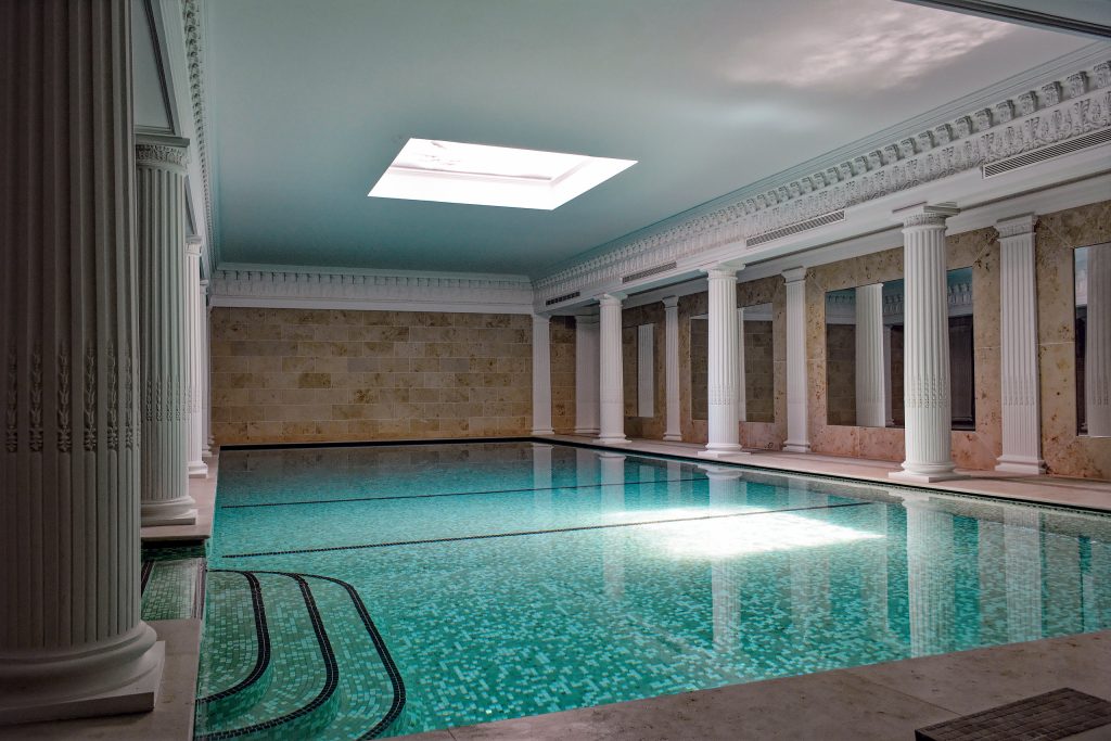 Bassin réalisé en puits de lumière pour une piscine d’intérieure.